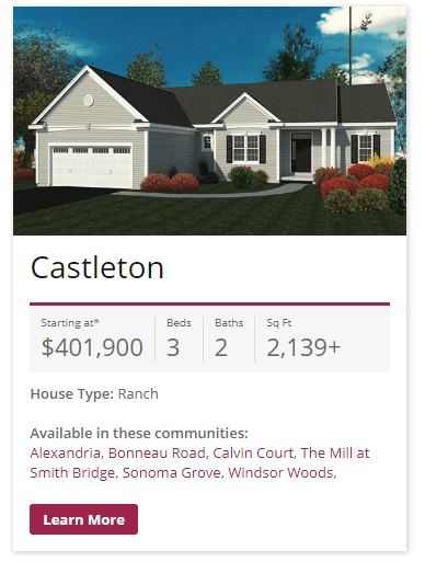 New Quick Info Pods: (By updating our communities pages and floor plan page with quick info pods, we make it easy for you to see all the important information with a quick glance. We’ve also added links in our Community pods for frequently requested info like – directions, sales center info and quick delivery homes available. For the floor plans, the pods make it easy to see the key information and where they are available without any additional clicks.)