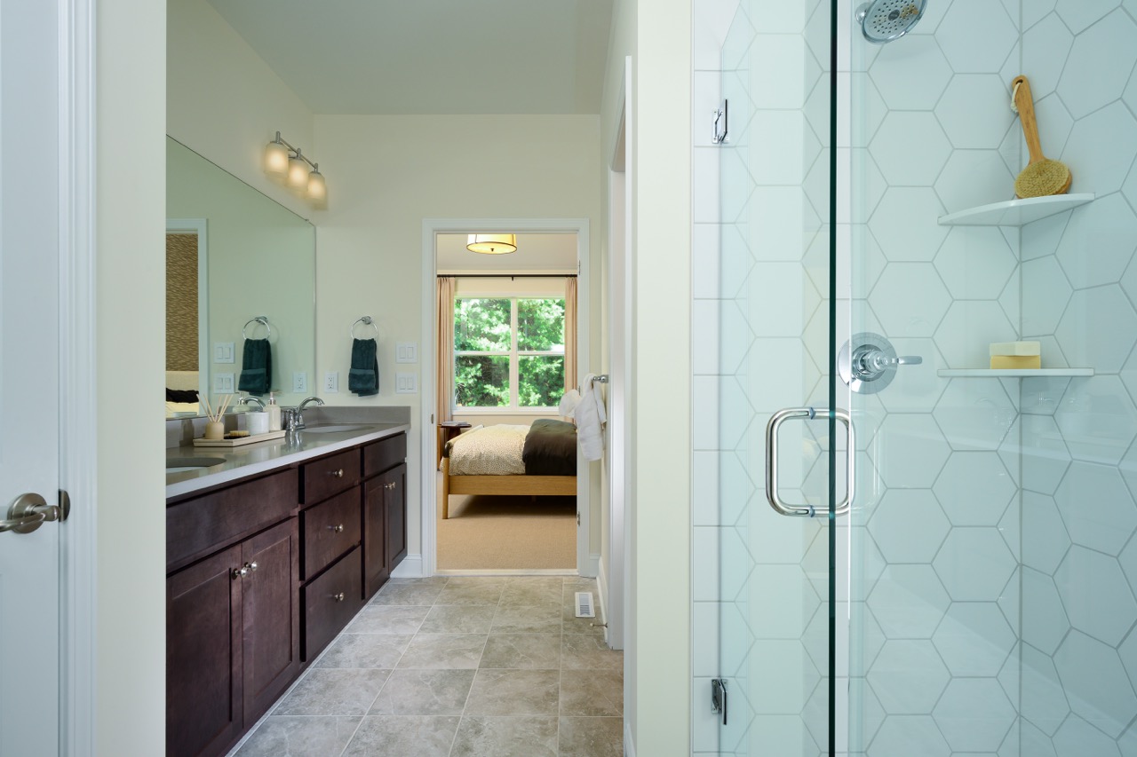 - Primary Bath with extended vanity with one sink (per plan)