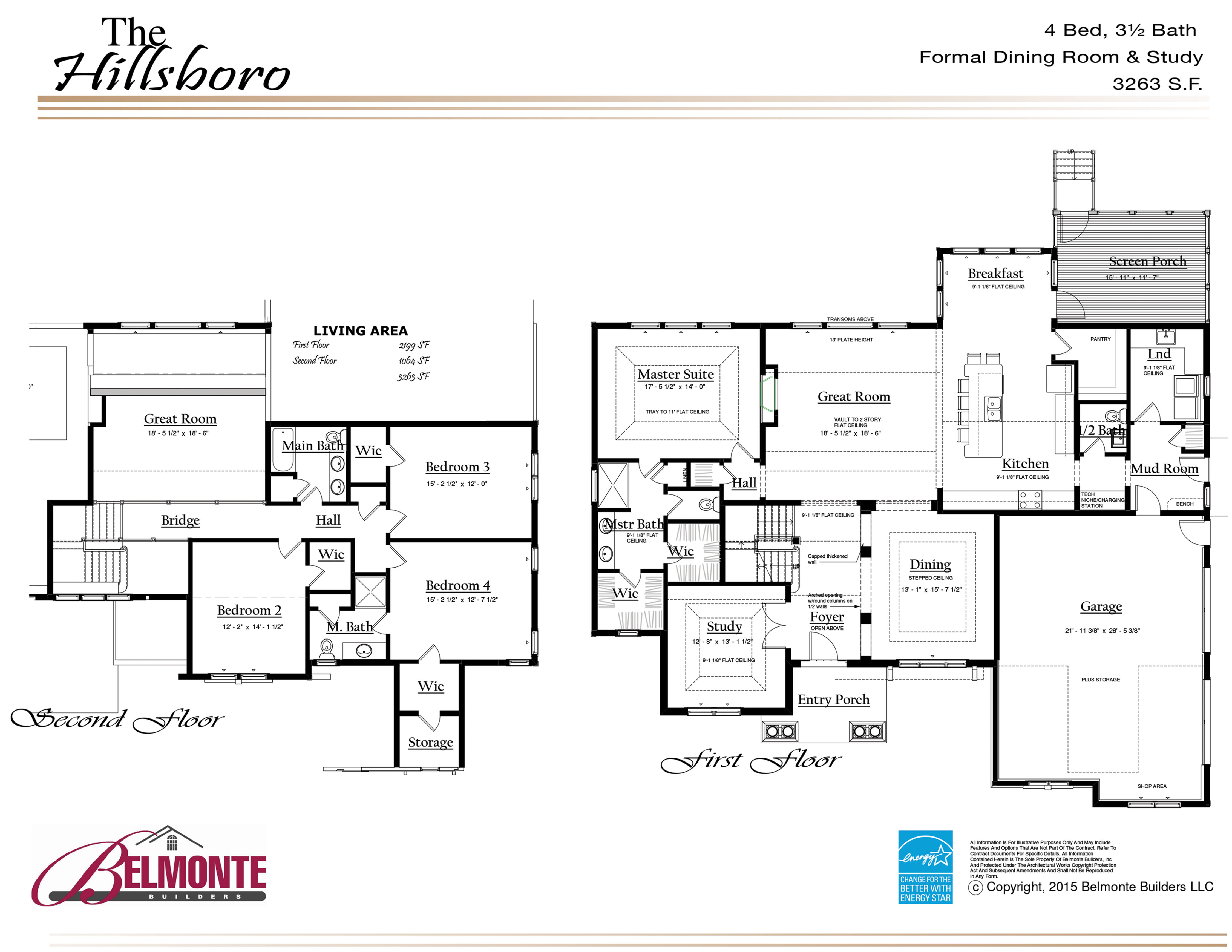 The Hillsboro’s open floor plan lends itself to entertaining and family gatherings with the spacious two-story great room open to both a large gourmet kitchen and breakfast nook. The gourmet kitchen has room for everything with a large walk-in pantry and oversized working island with seating for six.