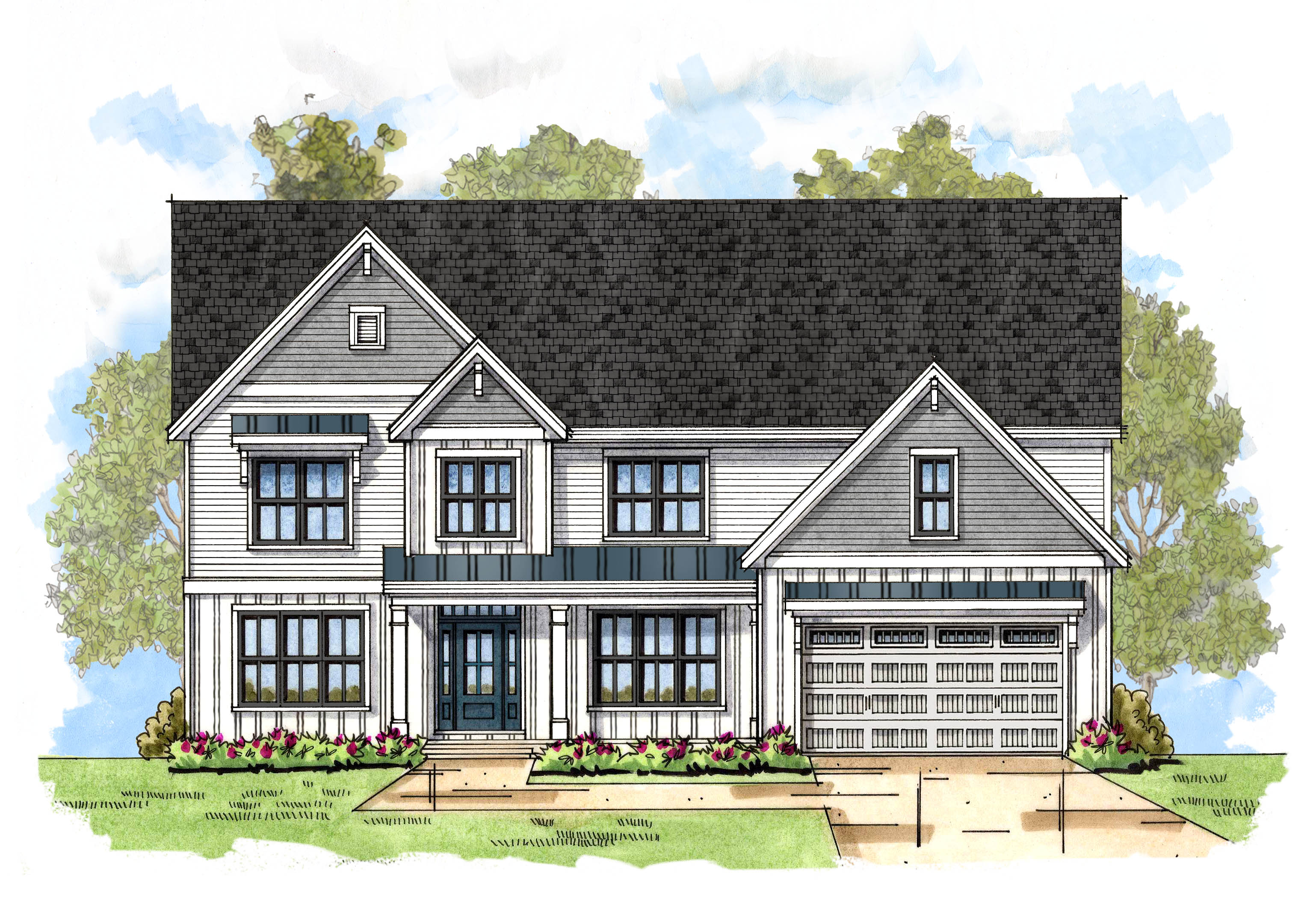 A small covered porch off the kitchen provides easy access to the backyard with the option to add a screen porch off the nook. The kitchen features an oversized, working island and has room for everything with a large, walk-in pantry, and it's close proximity to the mudroom & laundry room. A beautiful sunroom completes the main level and provides the perfect spot to unwind. A mudroom off the two-car garage completes the 1st floor.
