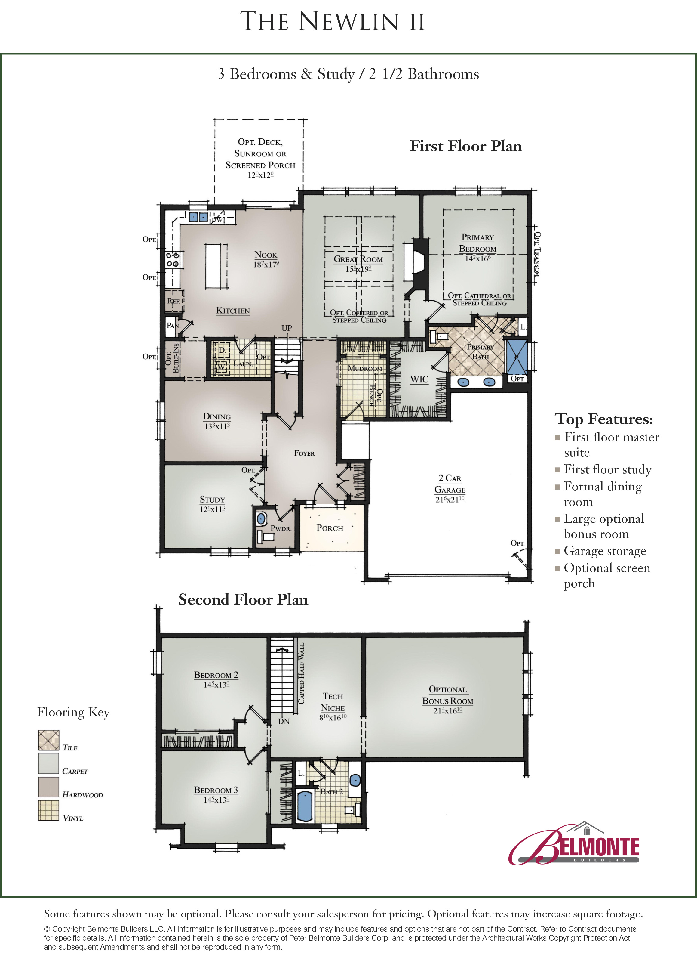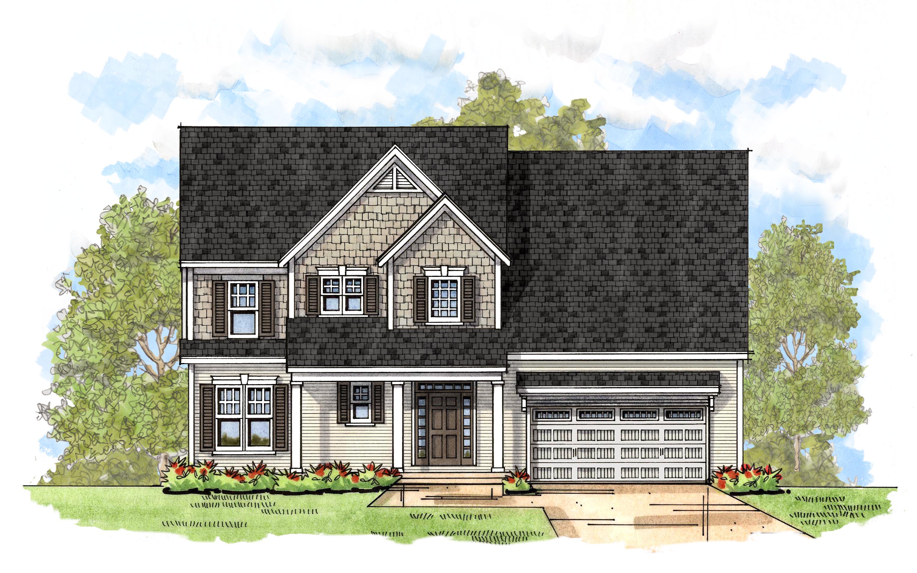 This spacious floor plan makes a great first impression with a formal study off the large entry foyer. This plan also boast a formal dining room which connects to the kitchen through a short hallway with the option to add a butler’s pantry and/or folding counter/sink. The kitchen opens into the great room and features a large island, pantry, and nook with the option to add a deck, screened porch or sunroom. The great room features a gas burning fireplace with granite surround and the option to personalize the space with a coffered or stepped ceiling.