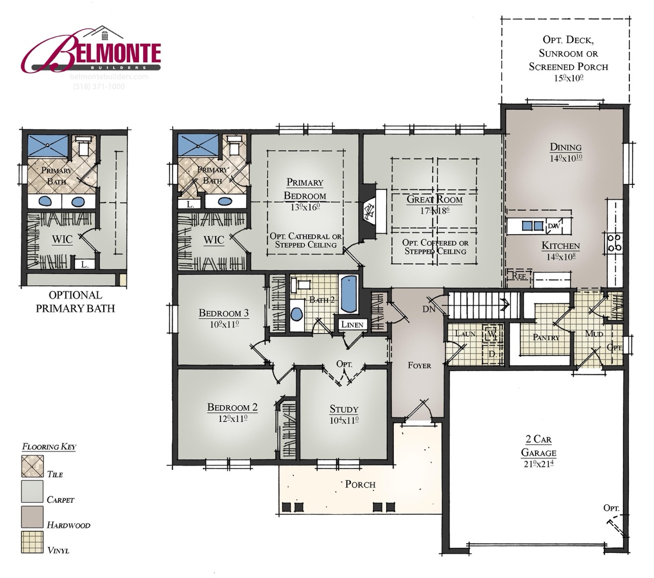 - Optional Sunroom or outdoor space (Screened Porch, Deck or Paver Patio)