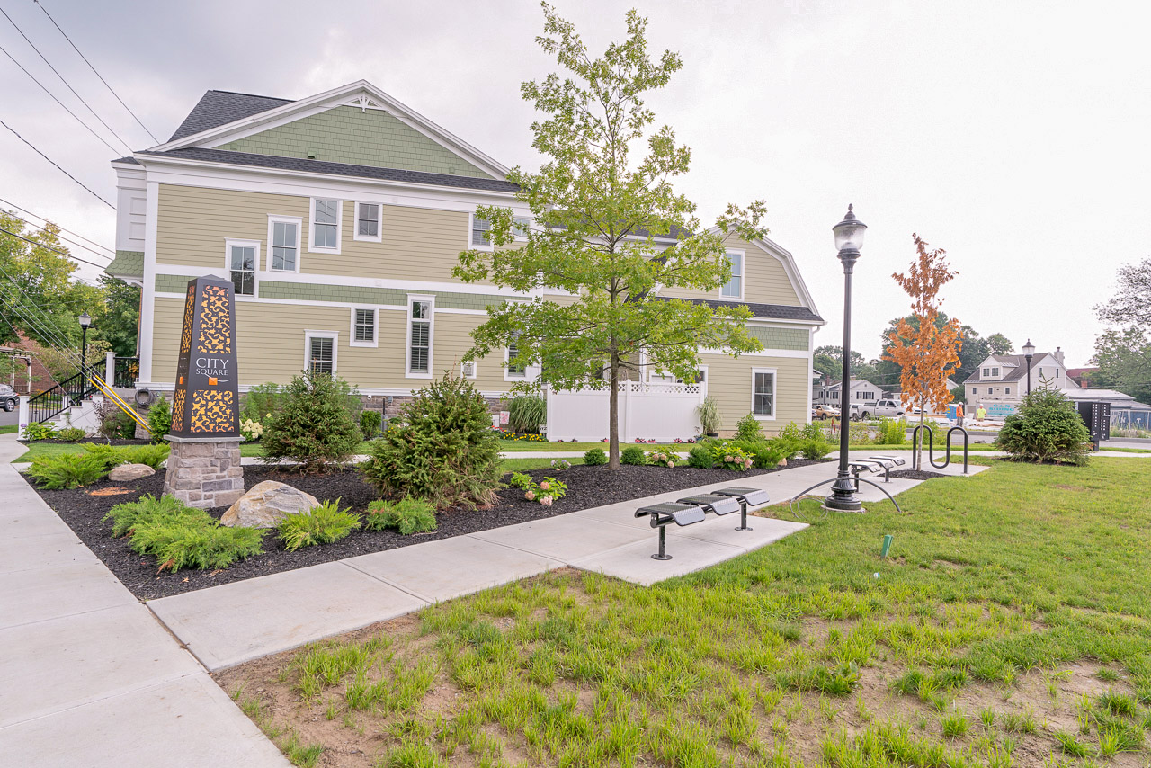 - Sidewalks and charming street lamps
